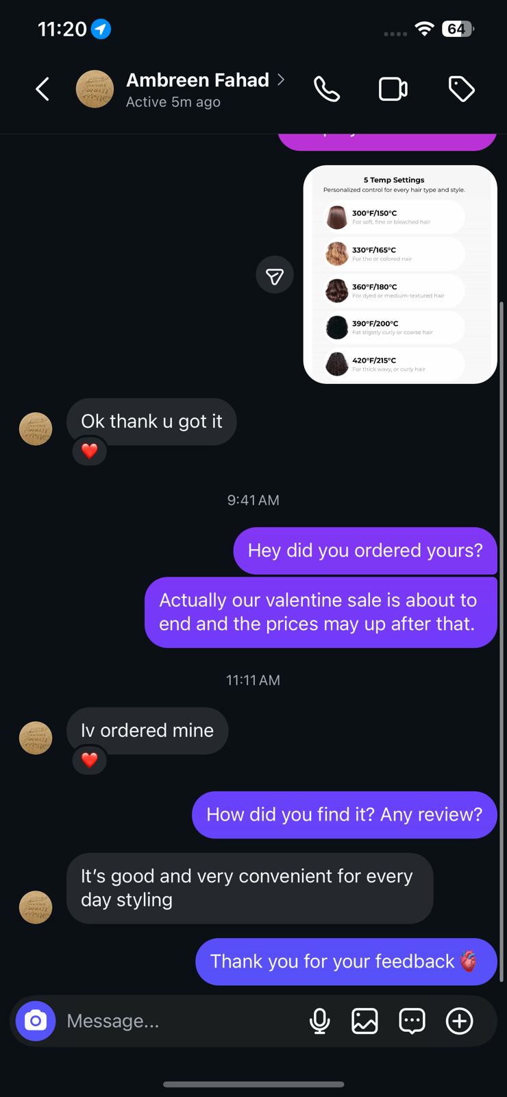 From 320 F to 410 F for all hair types.
