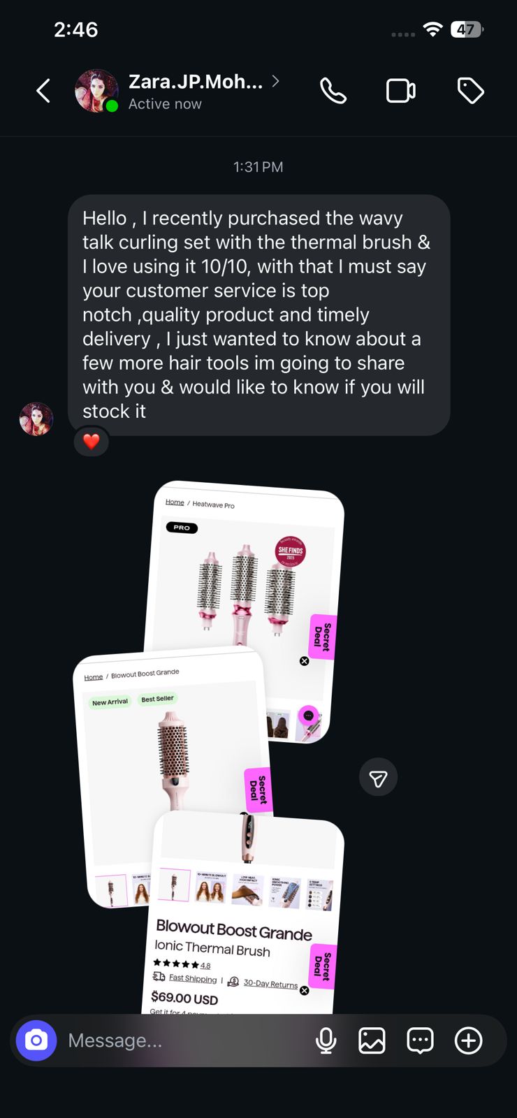 - Ionic Thermal Brush x1 Hair Clips x2